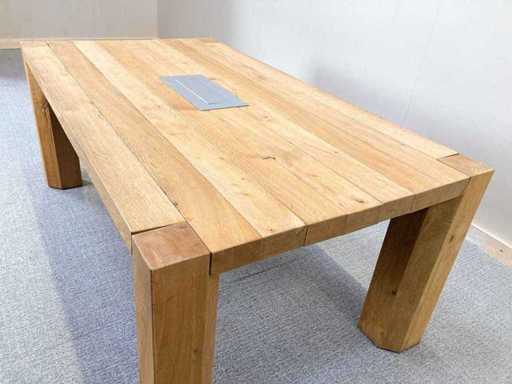Massief houten vergadertafel met midden stroom aansluitpunt