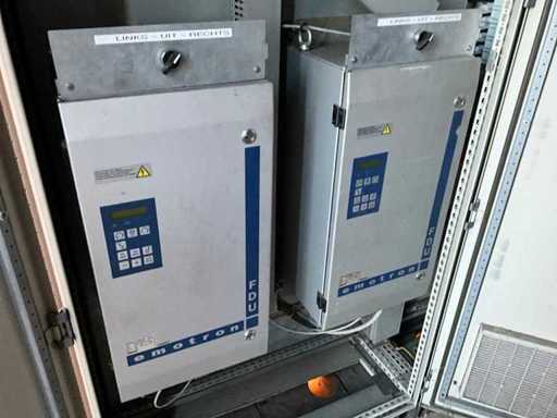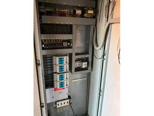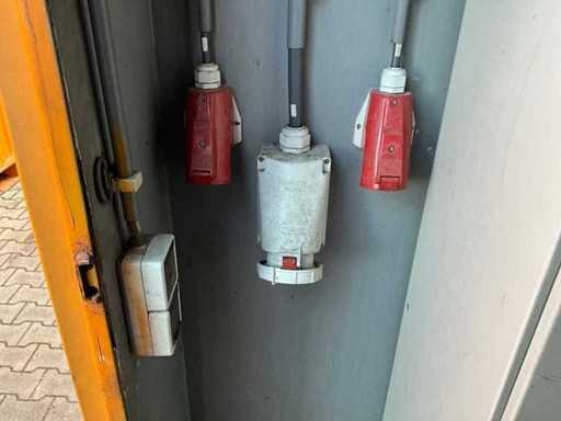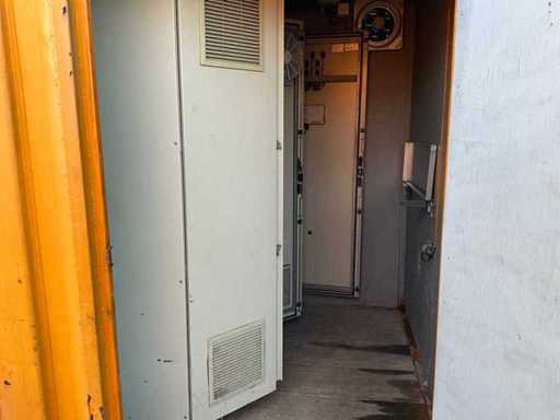 5Ft-container uitgerust met een PLC-besturingssysteem voor het beheren van twee motoren van elk 45 kW, stroomaansluiting 400 Volt; verlichting; twistlocks; heftruck vorksleuven