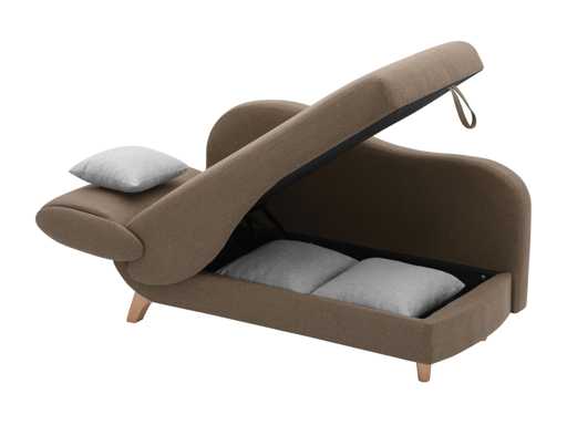 Converteerbare rechte chaise longue in bruine stof met opbergdoos