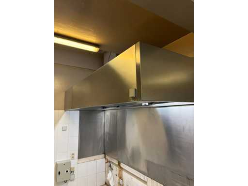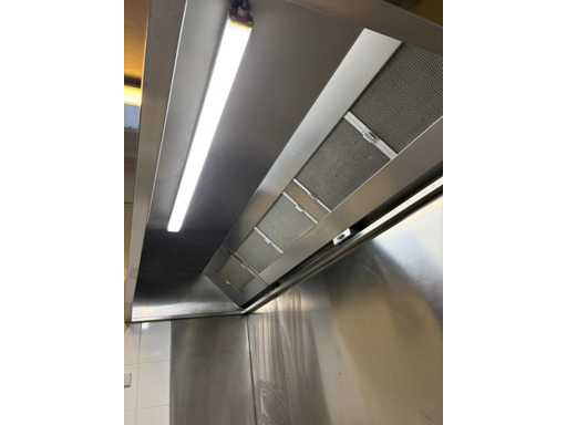 Professionele industriële dampkap in roestvrij staal (inox), geschikt voor grootkeukens, horeca-omgevingen en collectieve keukens.