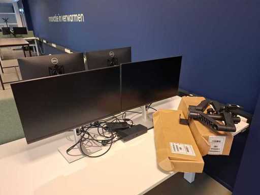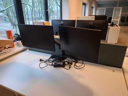 4 sets monitor Dell op monitorarm, in totaal 8 schermen. Inclusief dockingstation Dell K20A en voeten voor monitor