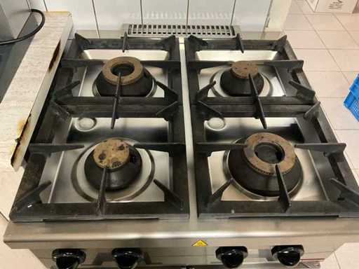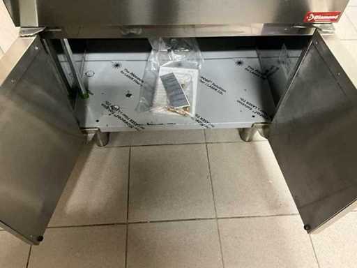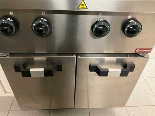Zeer degelijk en professioneel horeca gasfornuis van het kwaliteitsmerk Diamond, uitgevoerd in roestvrij staal. Ideaal voor gebruik in restaurant, grootkeuken, catering, traiteur, kantine of professionele keuken. Compact model met krachtige branders en handige opbergruimte onderaan - Afmetingen (geschat):