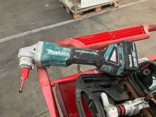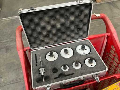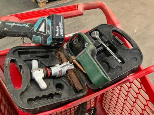 Waaronder gatenboorset Makita, diverse diamantboren, siliconespuiten, waterpas, buizensnuider, universeel detectiesysteem, buizenplooier BLACKMAXX, 2x slijpschijf Makita, boormachine