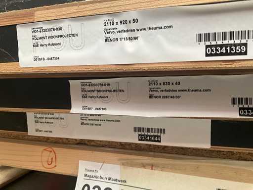 Waaronder verfdeuren PORTA NOVA waarvan 3x 2110x920x50, 1x 2110x830x40 en 1x 2110x980x40 mm, compleet met steldeur RF30 - 2115 x 930 mm, en 4x 2115x930x40 mm VE.PP-PREP. TIMDOOT-MF en deur 2115x930x50 VS50 PLAM, compleet met enige diverse deurlijsten MDF.