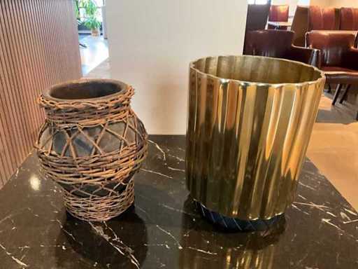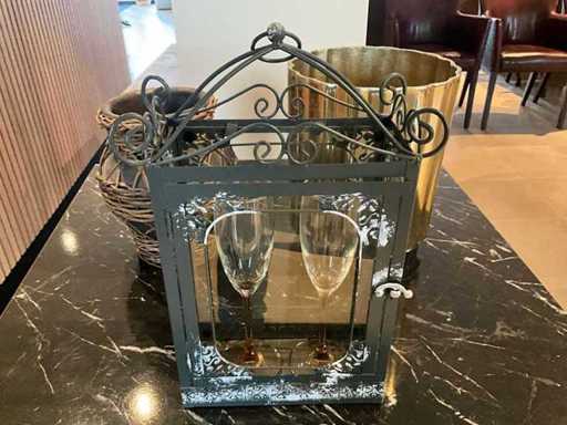 Waaronder 3x metalen wanddecoratie 45 x 90cm, decoratieve wandklok dia 55cm, diverse vazen, kaarsenhouders, 2 diverse houten bijzetmeubels