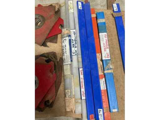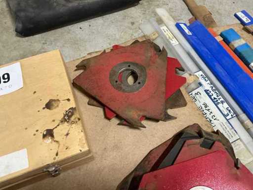 Waaronder Leitz. In diverse uitvoeringen, compleet met 10 diverse snijmessen voor schaafbank waaronder Tigra TCT 630 x 35 x 3mm
