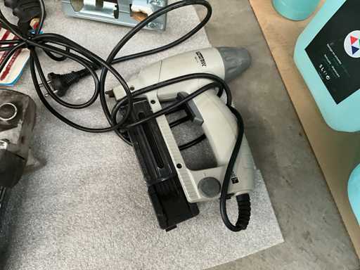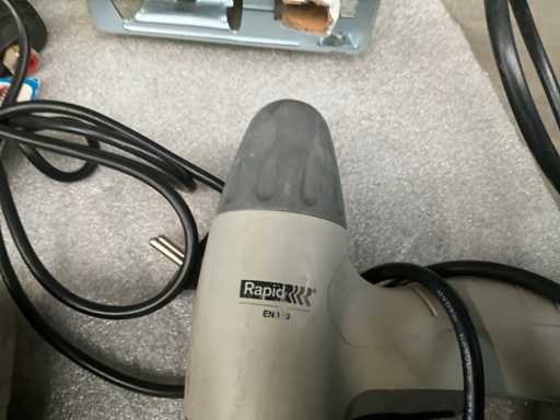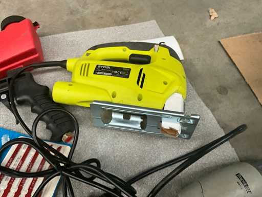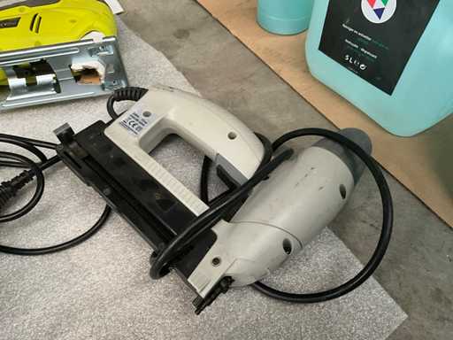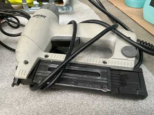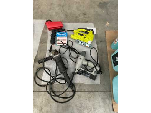 Waaronder elektrisch : haakse slijper Atlas Copco AG16-125XE, decoupeerzaag RYOBI EJ500, nietmachine Rapid EN320 en pneumatisch pistool.