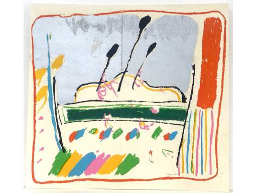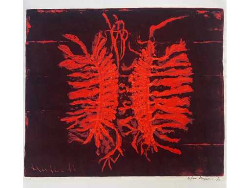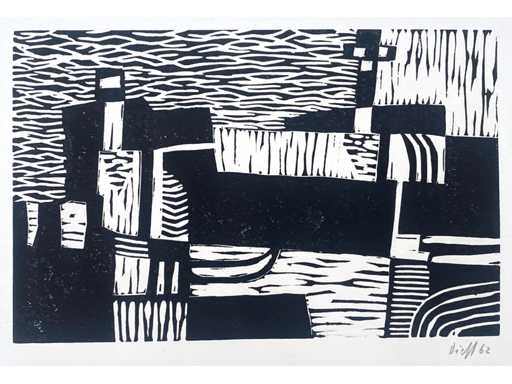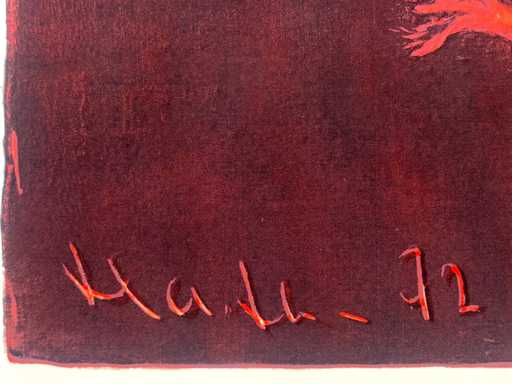 Lot van 10 werken waarvan 5 gesigneerd - in diverse technieken: zeefdruk, houtsnede, lithografie en foto - Kunstenaars: 3 x Nils Haglund (1939-1990), HAP Grieshaber (1909 – 1981), Roland Fürst, 5 x onleesbaar signatuur - veelal info in potlood op verso - Diverse afmetingen, grootste: 62,5x73 cm - Algemeen goede tot gebruikte staat