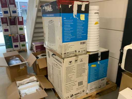 Bestaande uit 1x Brune B125 luchtbevochtiger, 3x Hale Humidifier 45DWCE luchtbevochtiger, 1x Airtek, 2x Vents VK250KP, 1x Vents VK350KP, 1x Vents VK200KP, 1x Innova 15HP Elec inverter * producten zijn ongecontroleerd en kunnen beschadigingen hebben * alles op en inclusief 2 pallets