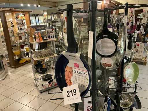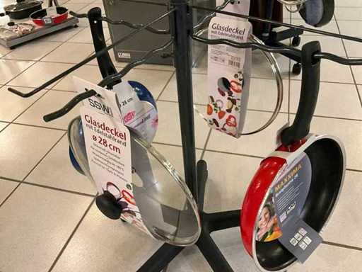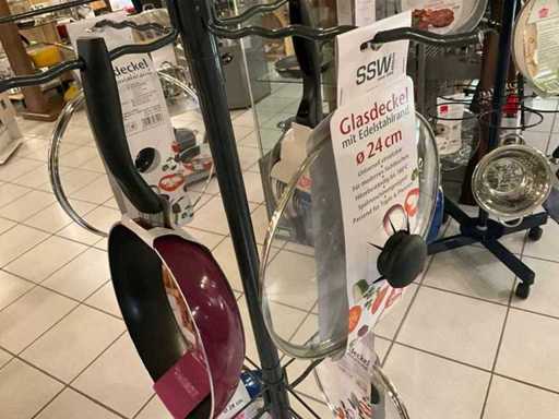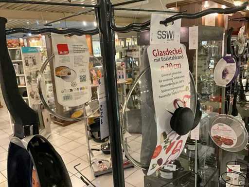 verschillende maten van pannen en glazen deksels met stootrand