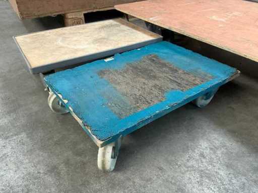 Waaronder 1x houten transportkar, afmeting: 145x80cm en 2 diverse verhuiskarren waaronder BAUHAUS