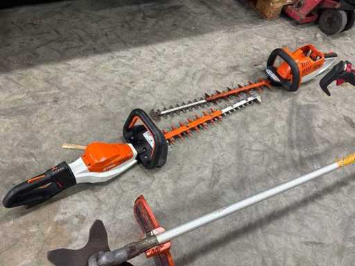 Bestaande uit 1x Stihl HSA 94T heggenschaar, 1x Stihl HSA 86 heggenschaar, 1x Husqvarna 143R-11 kantenmaaier, 1x Honda UMK435E kamtenmaaier, 1x Stihl MS 261C kettingzaag, 1x Hitachi bladblazer