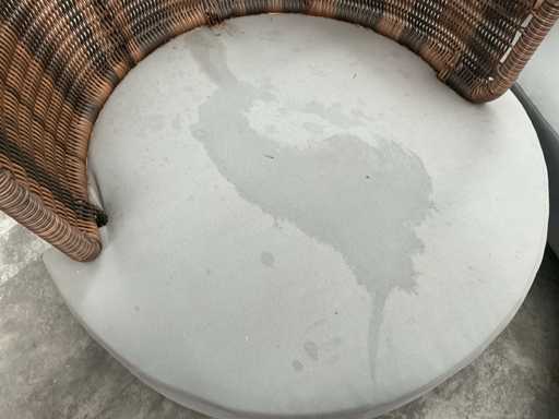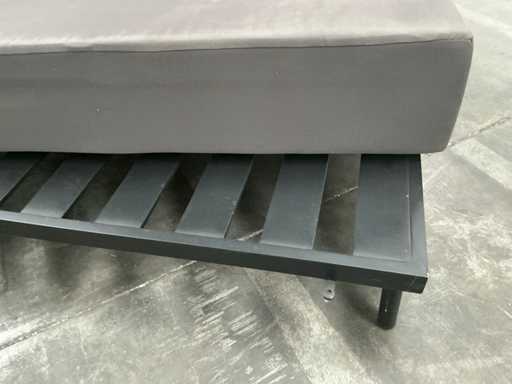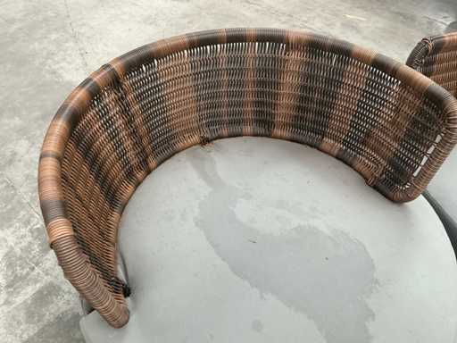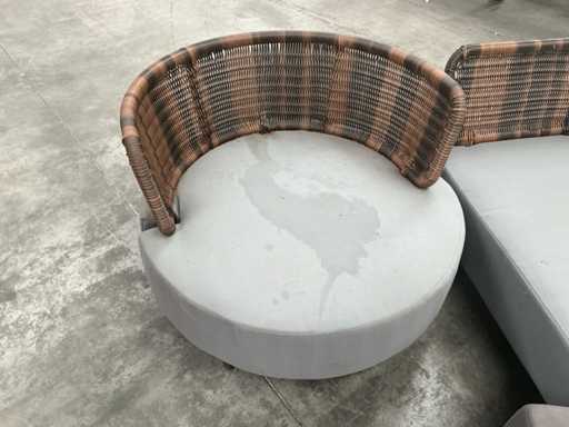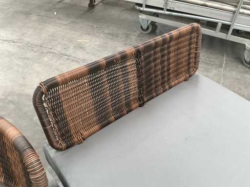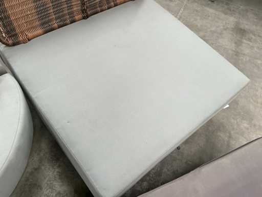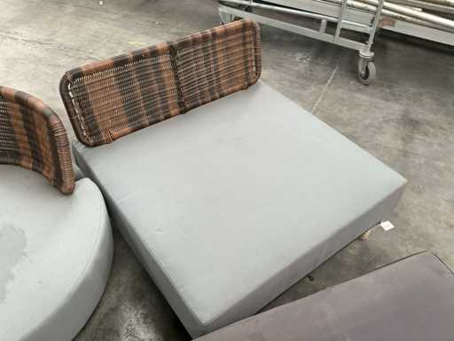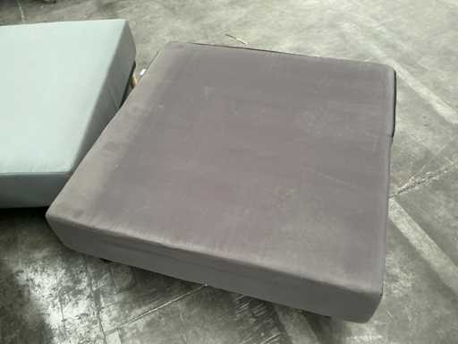 Waaronder 1x met afmetingen ca. 87 x 87 x 69cm en 1x met afmetingen ca. 95 x 95 x 67cm. Compleet met poef met afmetingen ca. 95 x 93 x 40cm. Allen voorzien van metalen onderstel en stoffen zitting.