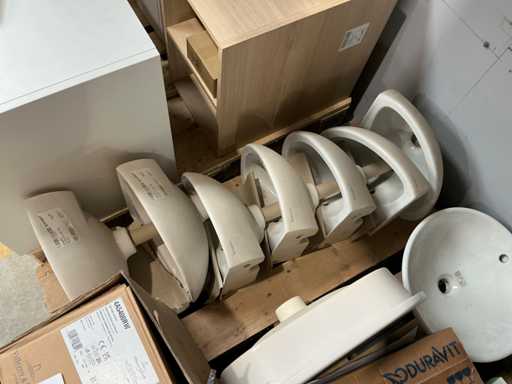 Waaronder 7x Duravit duraplus, Duravit D code, waaronder met dia 44cm, Villeroy en boch met afmetingen:48x32x15cm