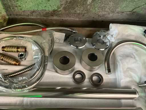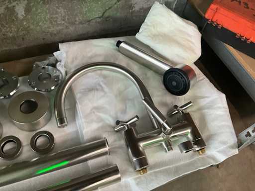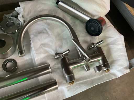 Badvul- en Douchemengkraan/vloer badkraan met divers toebehoren. Nieuw.