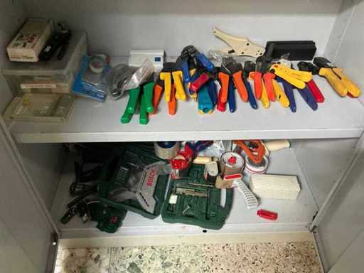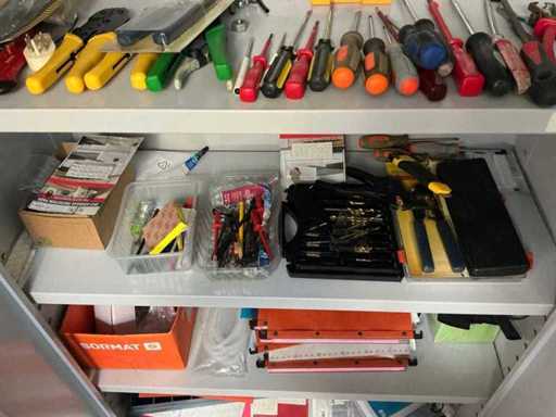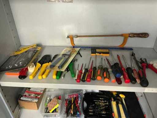Met inhoud zijnde partij diverse schroevendraaiers, diverse boren, circa. 19 diverse strip en krimptangen,..