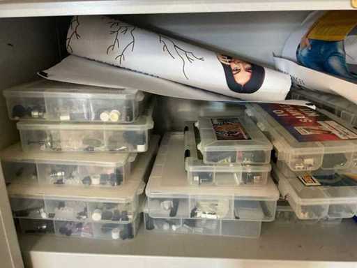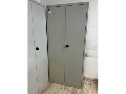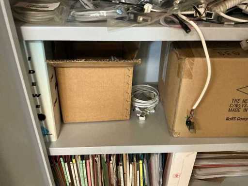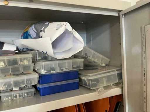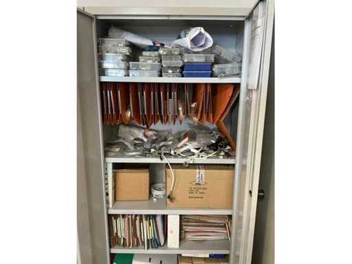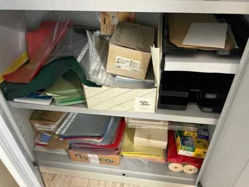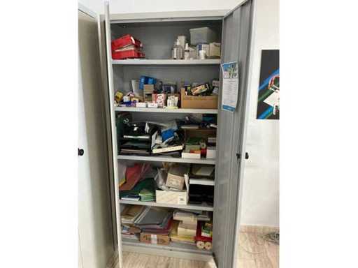 Voorzien van 2 deuren, compleet met inhoud zijnde enige bekabeling en toebehoren, partij kantoormateriaal en EHBO toebehoren, uitgezonderd boekhouding