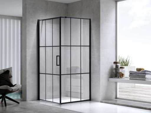 Type windows, Afmeting bxdxh 80x80x190cm of bxdxh 80x80x190cm, Kleur mat zwart,(graag aangeven per email na het sluiten van de veiling welke afmeting het wordt op info@mawialux.nl), Materiaal aluminium profielen met rvs ophanging en rvs handgrepen, Glas 6mm dik helder NANO gecoat veiligheidsglas (vermindert kalkaanslag doordat water niet kan hechten) , Type deur draaideur, Aantal deuren 1, Douchebak exclusief, Voorzien van water afsluitstrip onder de deur - verstevigingsstang(messing) - rvs deurgrepen in mat zwart - magneetstrips aan uiteinde deur/wand voor goed afsluiten van de deur - onzichtbare schroefbevestiging - extra hoekversteviging en bescherming op de vloer - bevestiging materiaal, Conditie: Nieuw in doos, Bijzonderheden geschikt voor op een douchebak en direct op de tegelvloer - zowel links als rechts in de hoek te monteren(dat de deur aan de andere kant komt) - hoge kwaliteit ophaning - wandprofielen 20 mm verstelbaar - 2 jaar garantie, hoge kwaliteit,
