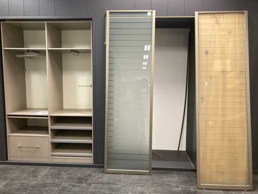 Dressing en 2 glazen separatie deuren. Dressing afmetingen : zie foto. Afmeting per deur : B71,5xH242xD3cm. Dressing zélf te demonteren bij ophaling.