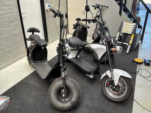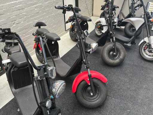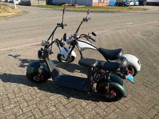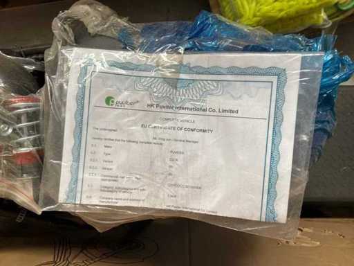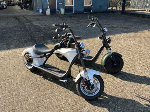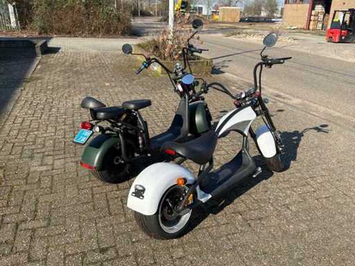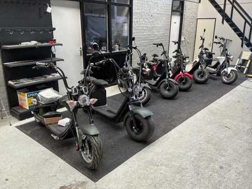Bestaande uit 10x elektrische Chopper (enkele accu) en 19x 2 persoons elektrische scooter (dubbele accu) * deels minimaal gebruikt en deels ongebruikt in verpakking * tevens is deze kavel voorzien van een grote hoeveelheid reserve onderdelen * voorzien van CVO verklaringen * in bijlage in PDF een overzicht van kleuren en compleetheid daarbij een overzicht van specificaties * winkelverkoopwaarde per stuk €2199,00 (bron bol.com) *