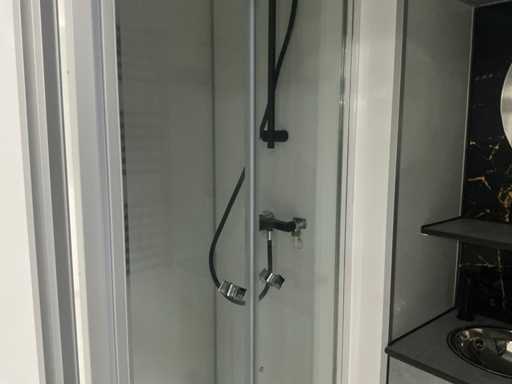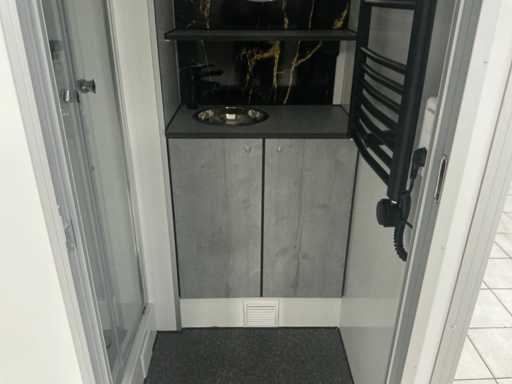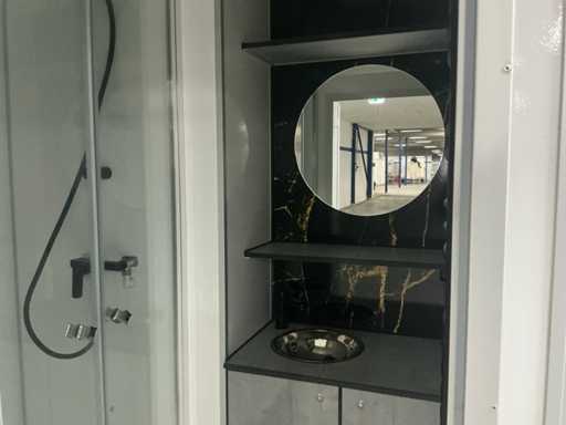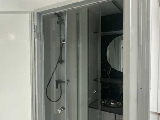 Douchebak 70x70cm met douchedeur, douche mengkraan, wastafel 70cm met spiegel. Sleutels aanwezig.