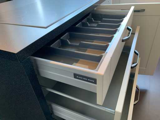 Let op: Deze specifieke keuken bevindt zich in de showroom op de eerste verdieping en moet door de koper worden gedemonteerd.
