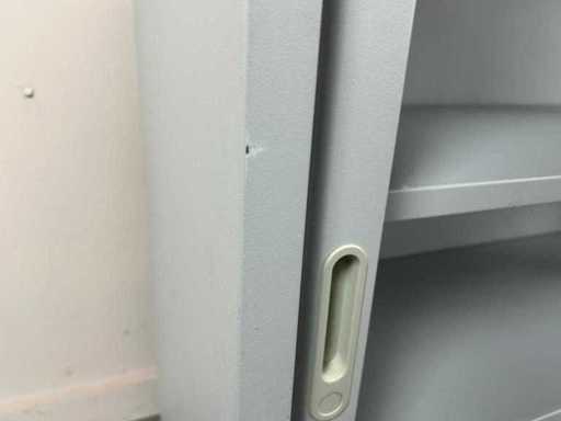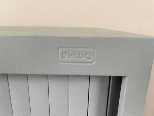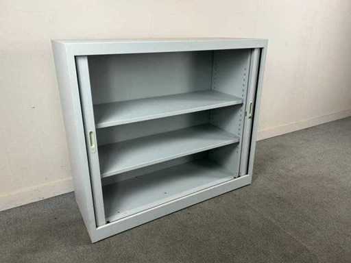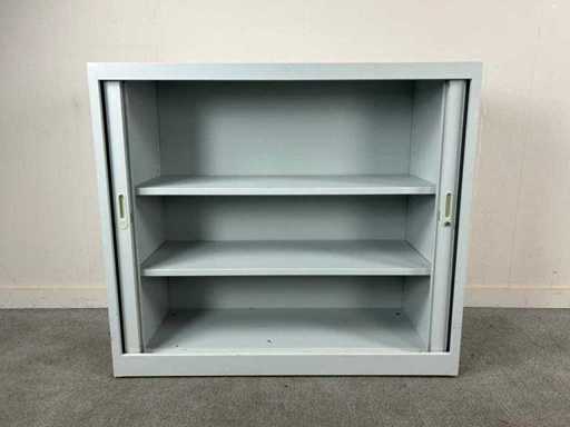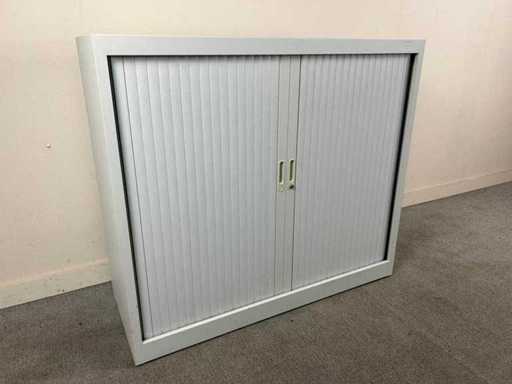 Ekwo lage roldeurkast in het grijs met 2 leggers. Met gebruikssporen, staat kan variëren bij afhaal.