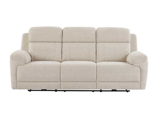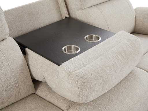 Elektrische 3-zits relaxbank met beige heide stoffen plank