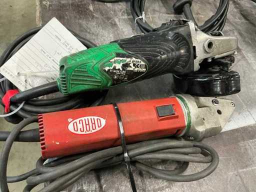 Zijnde Hitachi haakse slijper en Draco plaatschaar.