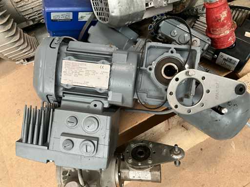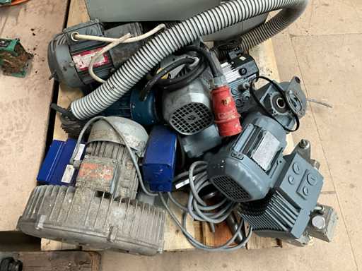 Diverse electromotoren waaronder SEW, Vector, Bonfiglioli, compleet met 3 diverse sturingskasten, liggende op pallet.