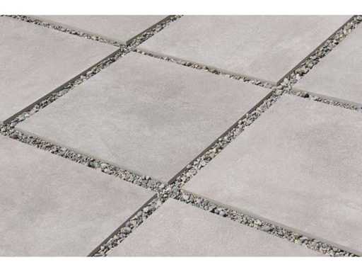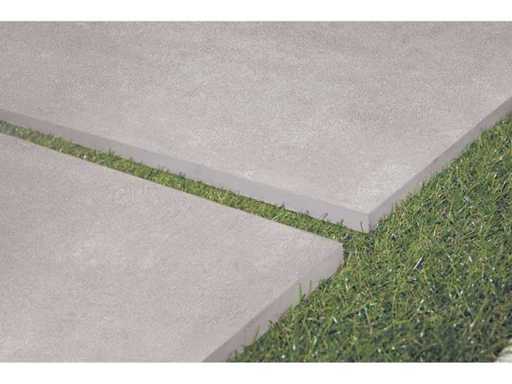 Keramische terrastegels van 20mm met betonlook uit Italië.