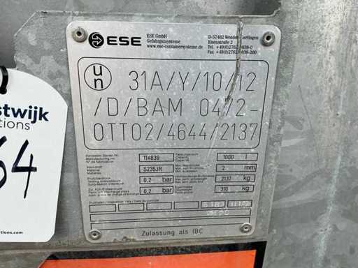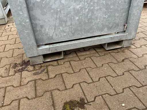 gegalvaniseerd staal; hijsogen; stapelbaar; heftruck vorksleuven; vulgraad meter; slangen; openklapbaar deksel; 1x afsluitdop;