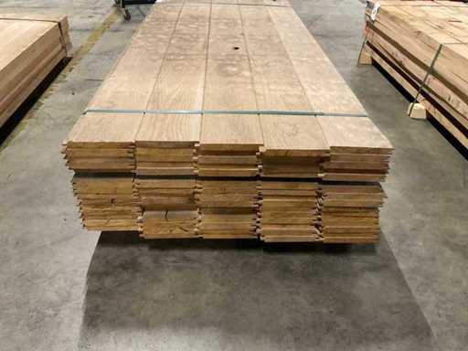 Lengte 200 cm; kunstmatig gedroogd; met mes en groef aan de langszijde; wormverdacht; totaal ca. 0,480 m³