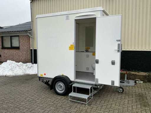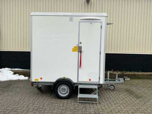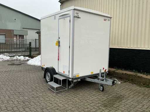 Voorzien van: Toilet, wc-rolhouder, wastafel met kraan warm-koud, bankje, douche met thermostaatkraan, douchegordijn, ophanghaakjes, dakraam, ventilatie, boiler, trekhaakkoppeling, neuswiel, steunpoten, handrem, electrische kachel, spiegel, verlichting binnen en buiten, verlichting aanhanger, opstaptreden, sleutel zit vast in cilinder