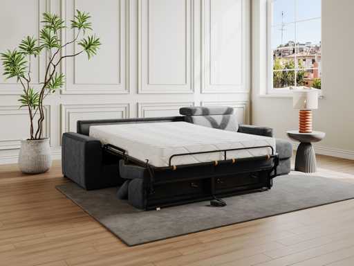 Express converteerbare omkeerbare hoekbank in antracietgrijs corduroy - Bed met brede latten 160 cm - Matras 22 cm traagschuim