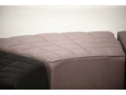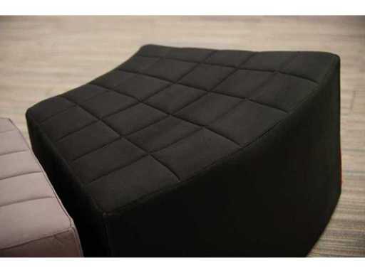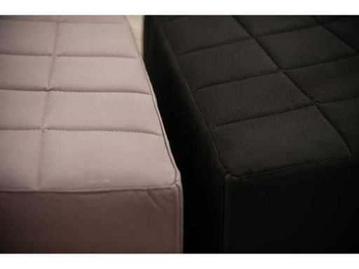 Merk: FATBOY Model / Gamma: 2nd Avenue Parc Nieuw / 2de Hands: 2de Hands Staat vh product: *** (Zeer lichte gebruikssporen) Soort detail: Poef Materiaal Bekleding: Polyesther Kleur: Grijs/Zwart Zithoogte in cm: 49cm Hoogte in cm: 49cm Breedte in cm: 88cm Diepte in cm: 57cm Set van 4 Fatboy modulaire zitting Deze set van 4 zitmodules van Fatboy biedt een flexibele en modulaire zitoplossing. Dankzij het lichte gewicht zijn de elementen eenvoudig te verplaatsen en aan te passen aan elke ruimte of behoefte. Ideaal voor een wachtzaal of ruime inkomhal, en combineerbaar met een extra set van 2 rode vierkante modules van hetzelfde merk (lot 21, D0188). - Opmerkingen: Goede algemene staat, met 2 zichtbare vlekken