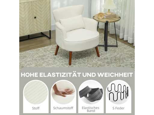 Zacht en zacht: Geniet van optimaal comfort met deze comfortabele stoel, uitgerust met een schuimkussen met hoge dichtheid, S-veren en een elastisch bandje, bekleed met een fijne stof en inclusief een wasbaar lendenkussen. Elegante stijl: Deze elegante en comfortabele fauteuil voor de woonkamer heeft gebogen armleuningen en een vleugelrug, gemonteerd op houten poten die elke kamer een vleugje elegantie geven. Langdurig gebruik: Deze ligstoel, met zijn stevige eucalyptushouten frame en duurzame rubberhouten poten met verstelbare plastic uiteinden, biedt stabiliteit en beschermt de vloer. Veelzijdig gebruik: Of het nu als decoratief element in de woonkamer is of als stijlvolle toevoeging aan je kantoor, deze compacte gestoffeerde stoel past perfect in verschillende interieurstijlen. Fauteuilafmetingen: 69 cm (L) x 69,5 cm (B) x 78 cm (H). Maximale belasting: 120 kg. Geleverd uit elkaar gehaald, eenvoudige montage.