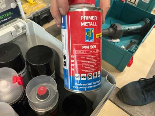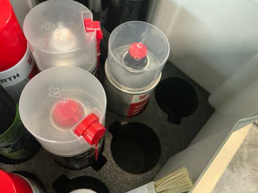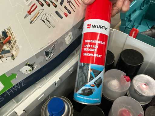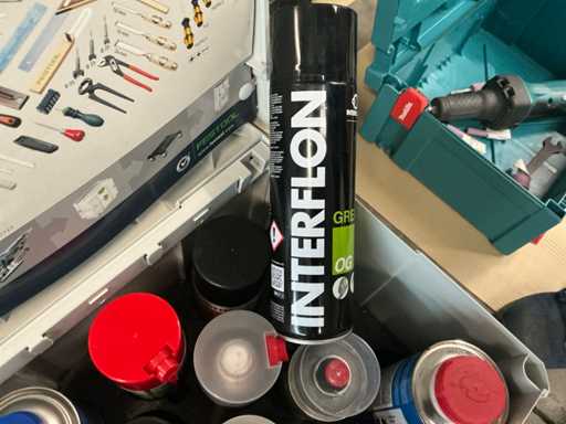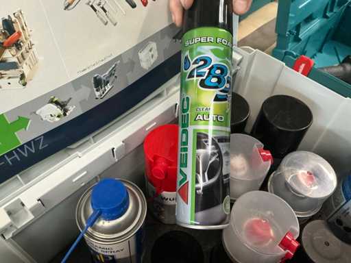 Inhoud bestaande uit diverse reiningsproducten in spuitbussen