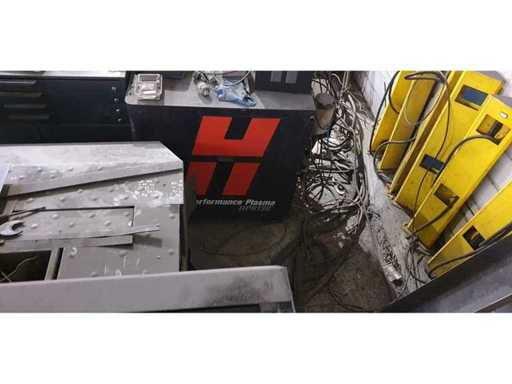 FICEP plasma snijtafel voor het snijden van grote plaatmetalen. Apparaat uitgerust met een Hypertherm HPR130 plasmabron en een boor- en tapping-satelliethoofd, waardoor meerdere bewerkingen op hetzelfde plaatmetaal kunnen worden uitgevoerd zonder te herpositioneren.