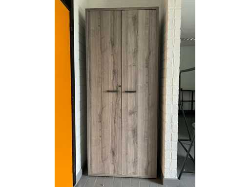 Fineer houten dossierkast, hoog model, voorzien van 2 deuren en 4 leggers