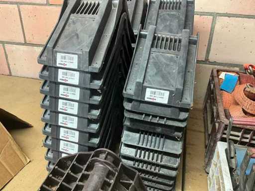 Zich bevindend in 3 pvc opbergbakken voornamelijk FORCH, compleet met partij diverse hoekverstevigingen FORCH.