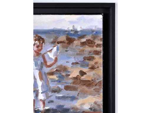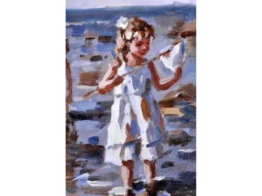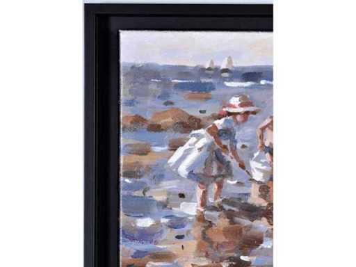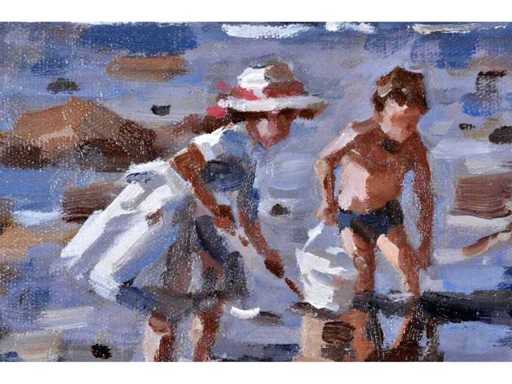 Francis Cristaux – Un dimanche à la plage - olie op doek - 30x40 cm