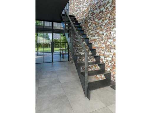 Keramische tegel in natuursteenlook met een verouderde rand uit Italië.