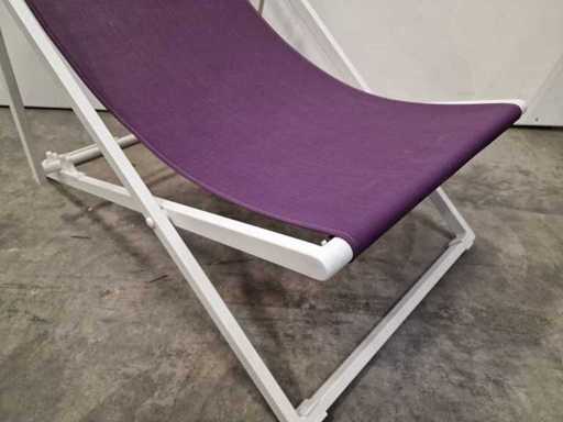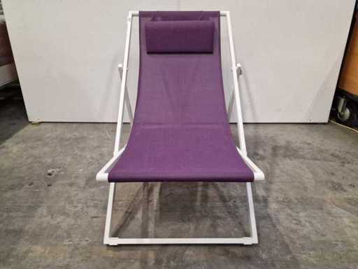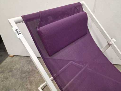 Garden Prestige - Alu Transat Wit Mat - Textilene Aubergine - Met Hoofdkussen