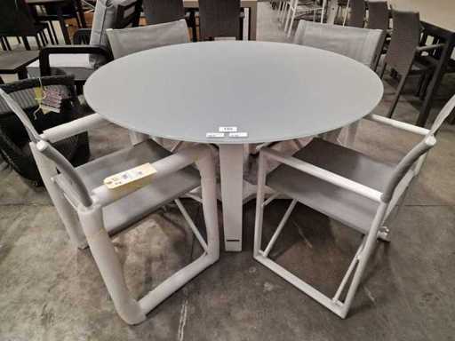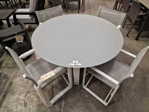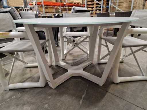 Garden Prestige - Alu Tuintafel Elise Wit Dia 130cm - Lichtgrijs Glas