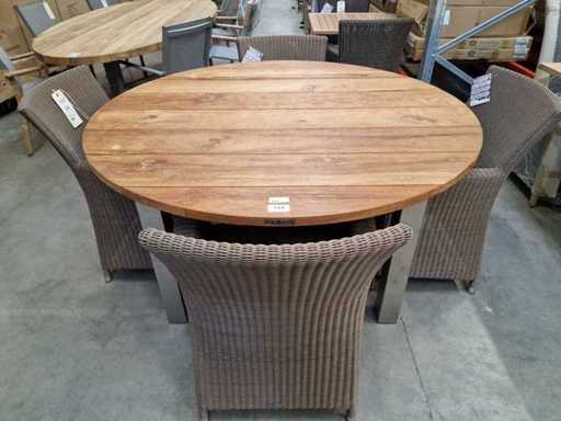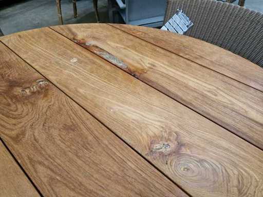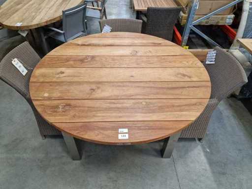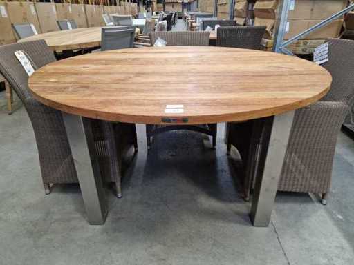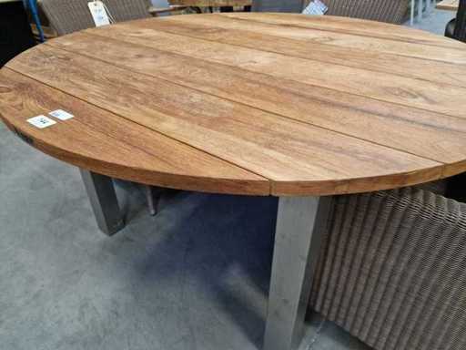 Garden Prestige Inox Tuintafel Dia 150cm met Teak Erosi Blad - Zwarte Constructie met Frame in Inox - Outdoor Kwaliteit