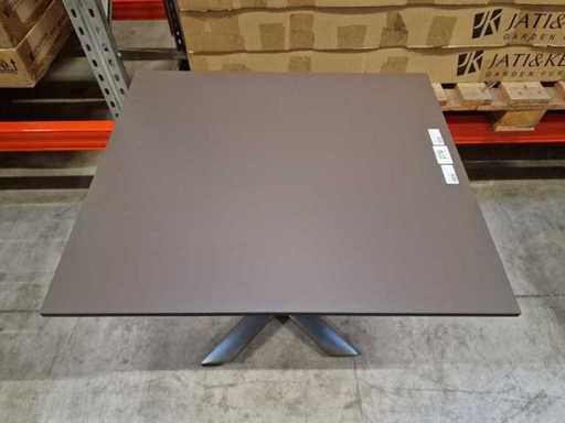 Gardini - HPL Tuintafel Volvic 70 x 80cm Taupe met Alu Antraciet Onderstel Kantelbaar - Horeca Kwaliteit afgewerkt met Sicaflex tussen de latten