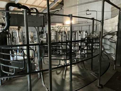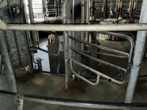 Bestaat uit: Gea Autorotor, 28-stands binnenmelker met een diameter van 13,20 meter, volautomatisch, geheel RVS uitvoering, vacuüm ketel RPS 2800, expansie vat, besturingssysteem, leiding tot tank ca. 15mtr. Geheel werkend. Dient door koper professioneel gedemonteerd te worden, Hydraulisch bediende carousel, inclusief melkklauwen 28 stuks, Gea DemaTron 70 computer 28 stuks,Westfalen Surge operator control 200i, capaciteit ca. 100-110 koeien per uur, maatvoering in PDF bijgevoegd.
