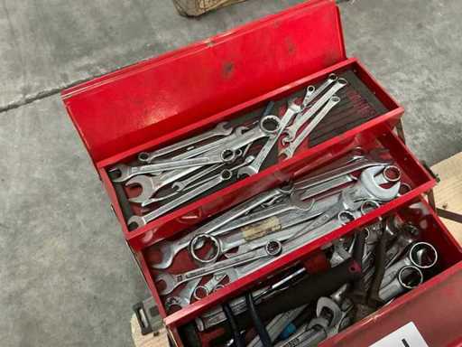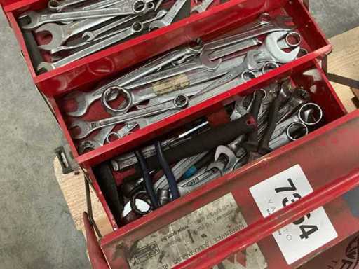 Inhoudende grote partij diverse ring- en steek/dopsleutels en ratelsleutelset.