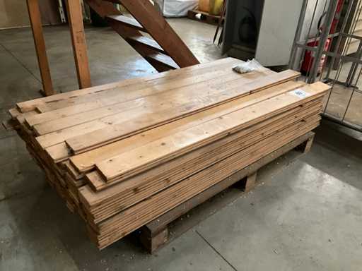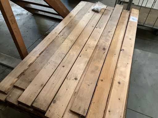 Waarvan elke lat 148 x 10 x 1,8 cm dik.